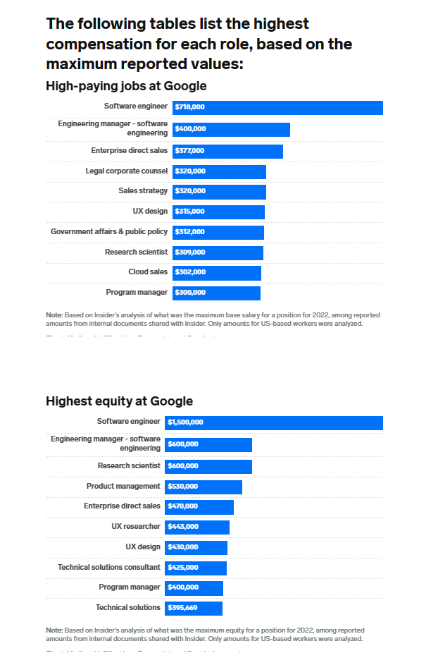 7月24日消息,外媒Insider日前宣稱獲得了一份谷歌員工之間共享的電子表格,數(shù)據(jù)表明2022年谷歌員工的總年薪平均為27 98萬美元(IT之家注:約 ...