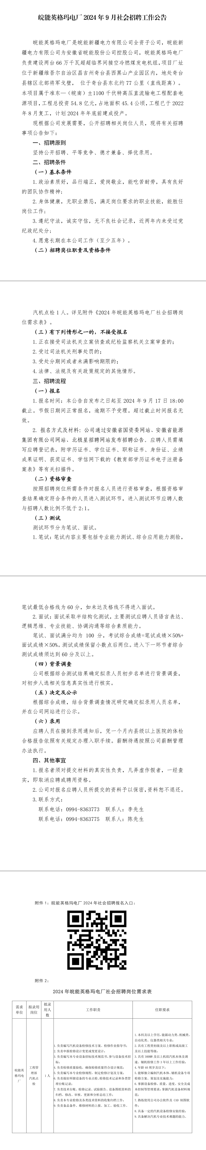 2024年皖能英格瑪電廠社會招聘工作公告
