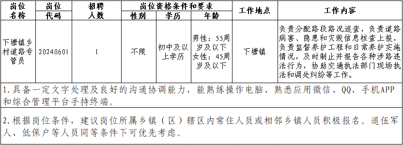 5、招聘單位有權根據崗位需求變化及報名情況等因素,調整、取消或終止個別崗位的招聘工作,本公告最終解釋權歸長豐縣交通運輸局所有。