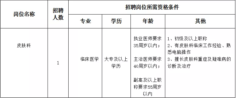 因?qū)W科建設(shè)和業(yè)務(wù)發(fā)展需要,經(jīng)研究,醫(yī)院面向社會(huì)公開招聘皮膚科衛(wèi)生專業(yè)技術(shù)人員?,F(xiàn)將有關(guān)事項(xiàng)公告如下: