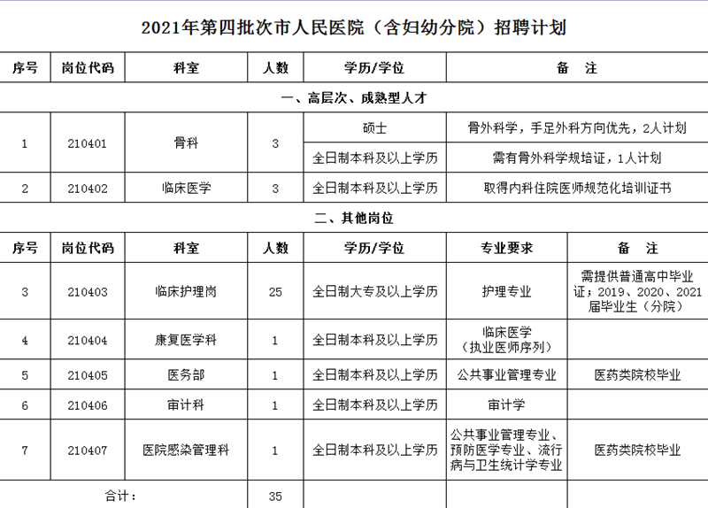 2021-07-22 10:17:19閱讀()宣城市人民醫(yī)院為滿足市人民醫(yī)院及市婦幼保健院發(fā)展需要,加強人才隊伍建設(shè),按照公開、平等、競爭、擇優(yōu)的原則,面向社會公開招聘工作人員,現(xiàn)將有關(guān)事項通知如下。