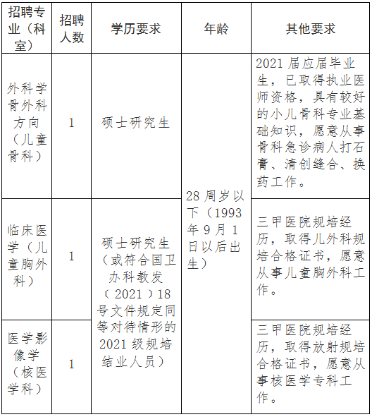 2021-09-16 02:49:22閱讀()安徽省兒童醫(yī)院根據(jù)國家區(qū)域醫(yī)療中心建設(shè)需要,經(jīng)研究決定,面向社會公開招聘部分崗位工作人員,現(xiàn)公告如下:
