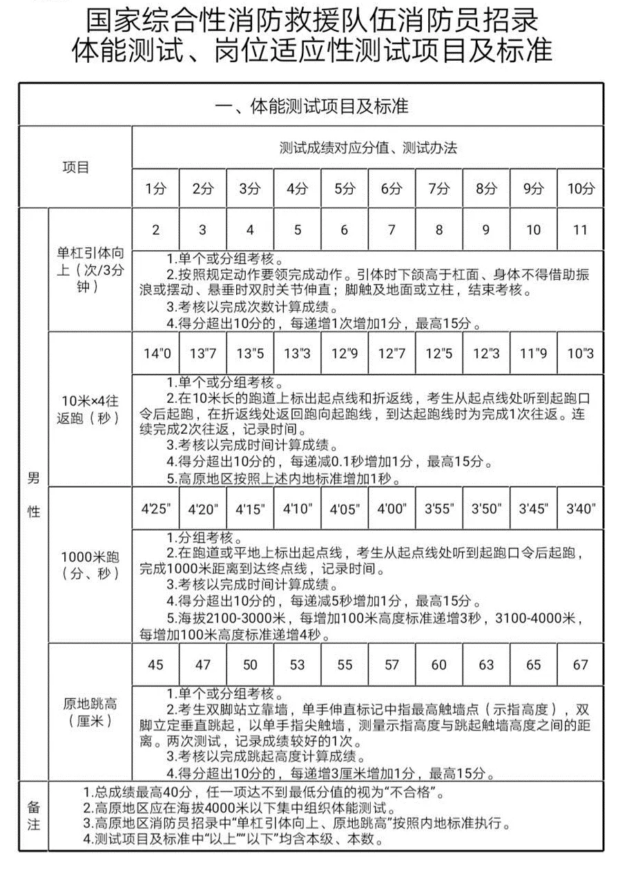 4、體檢。體檢費用自理。體檢標(biāo)準(zhǔn)參照《應(yīng)征公民體格檢查標(biāo)準(zhǔn)》中軍隊陸勤人員標(biāo)準(zhǔn)執(zhí)行?;谙谰仍ぷ鲝姸蕊L(fēng)險高的特殊要求,對已評定殘疾等級和有嚴(yán)重傷病治療記錄等不適宜從事消防救援工作的不予招錄。
