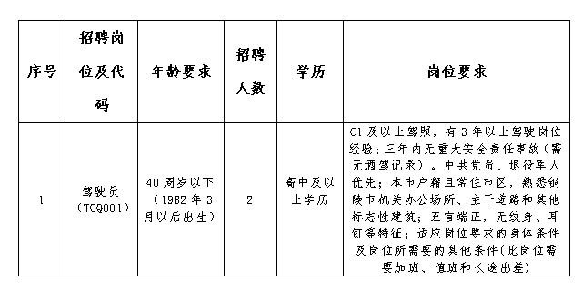 因工作需要,銅陵市銅官區(qū)公務(wù)用車平臺(tái)現(xiàn)面向社會(huì)公開(kāi)招聘勞務(wù)派遣制工作人員2名,現(xiàn)將有關(guān)事項(xiàng)公告如下: