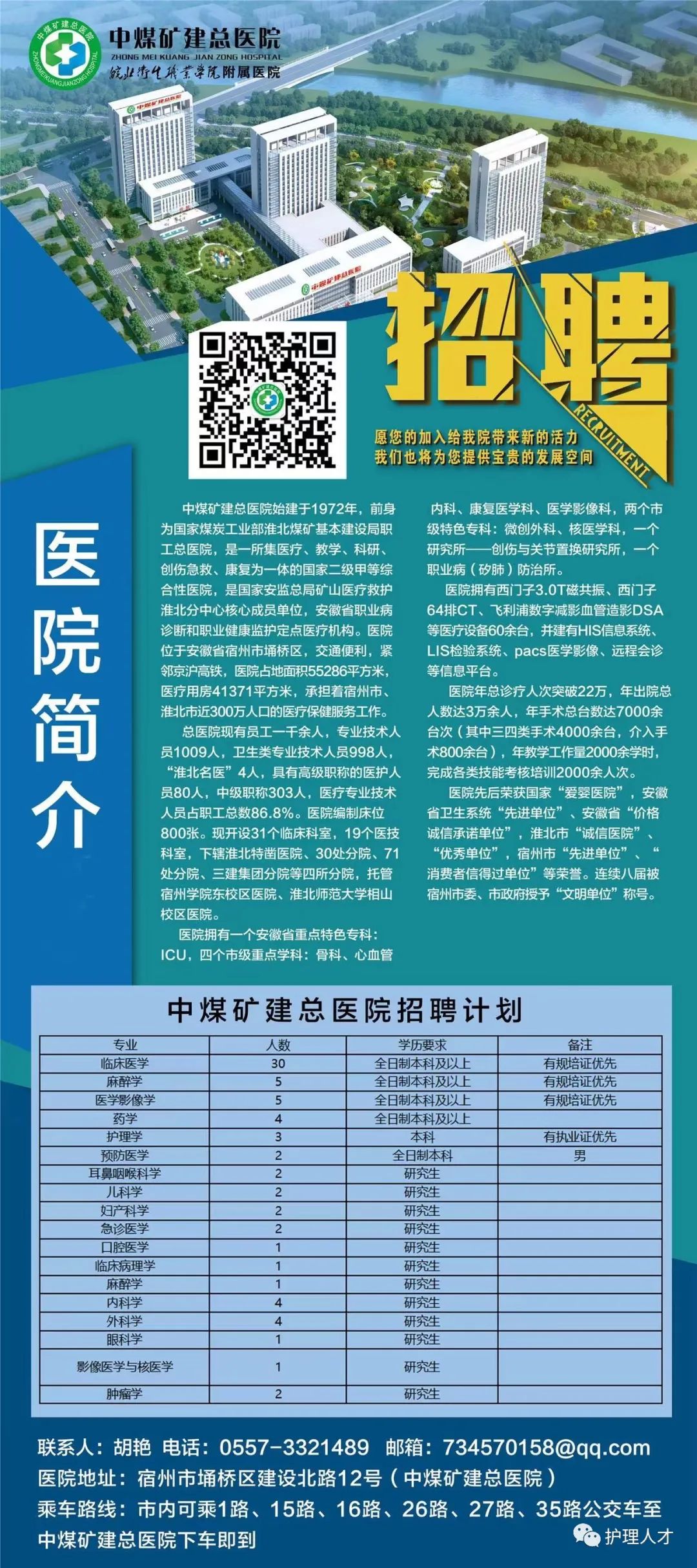 中媒礦建總醫(yī)院始建于1972年,前身為國家煤炭工業(yè)部淮北煤礦基本建設(shè)局職工總醫(yī)院,是一所集醫(yī)療、教學(xué)、科研、創(chuàng)傷急救、康復(fù)為—體的國家二級甲等綜合性醫(yī)院,是國家安監(jiān)總局礦山醫(yī)療救護(hù)準(zhǔn)北分中心核心成員單位,安徽省職業(yè)病診斷和職業(yè)健康監(jiān)護(hù)定點(diǎn)醫(yī)療機(jī)構(gòu)。醫(yī)院位于安徽省宿州市埇橋區(qū), 交通便利,緊鄰京滬高鐵,醫(yī)院占地面積55286平方米