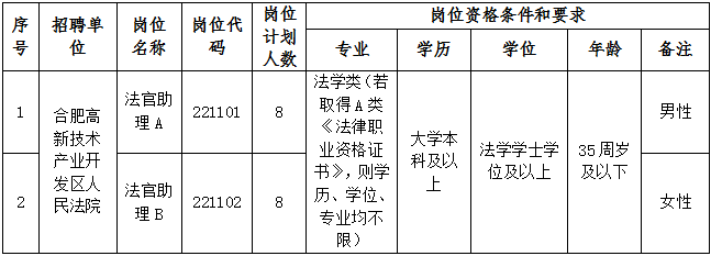 根據(jù)工作需要,合肥高新技術(shù)產(chǎn)業(yè)開發(fā)區(qū)人民法院委托遠創(chuàng)人力資源管理集團有限公司面向社會公開招聘聘用制法官助理16名。現(xiàn)將有關(guān)事項公告如下: