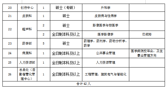 2023-02-17 11:40:48閱讀()阜陽市婦女兒童醫(yī)院為滿足醫(yī)院發(fā)展需求,有效配置人力資源,根據(jù)《安徽省事業(yè)單位公開招聘人員暫行辦法》及醫(yī)院實際情況,我院擬面向社會公開招聘專業(yè)技術(shù)人員共計42名,現(xiàn)制定招聘方案如下: