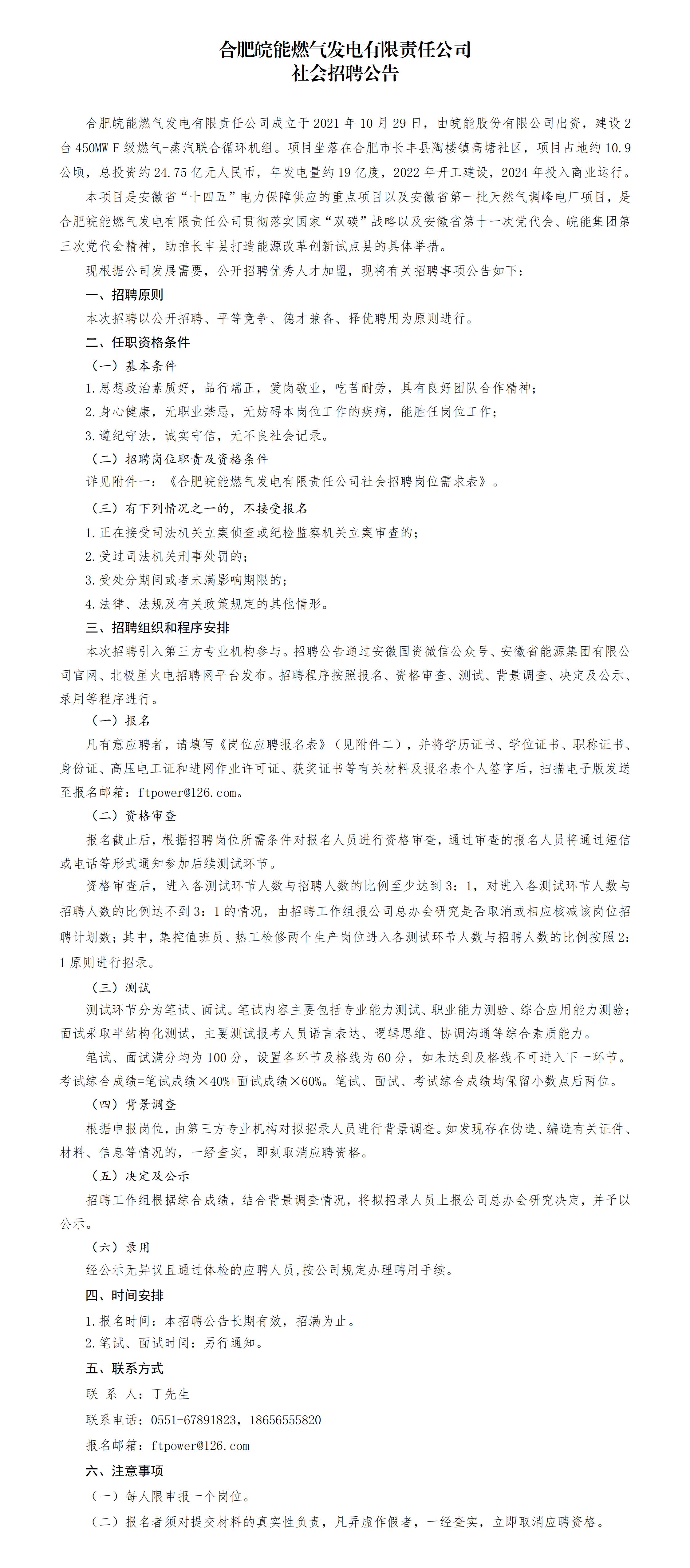詳見附件一:《合肥皖能燃?xì)獍l(fā)電有限責(zé)任公司社會(huì)招聘崗位需求表》。