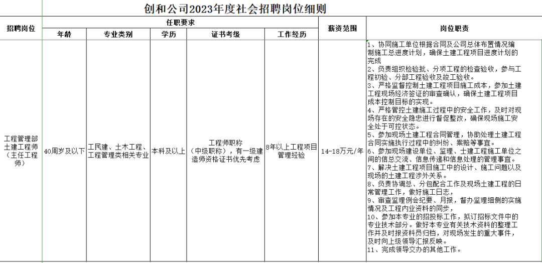 為滿足公司發(fā)展需要,根據(jù)《合肥創(chuàng)和資產(chǎn)管理有限責(zé)任公司員工招聘管理辦法》的要求,結(jié)合公司的實際情況,擬面向社會公開招聘工程管理部土建工程師2名。