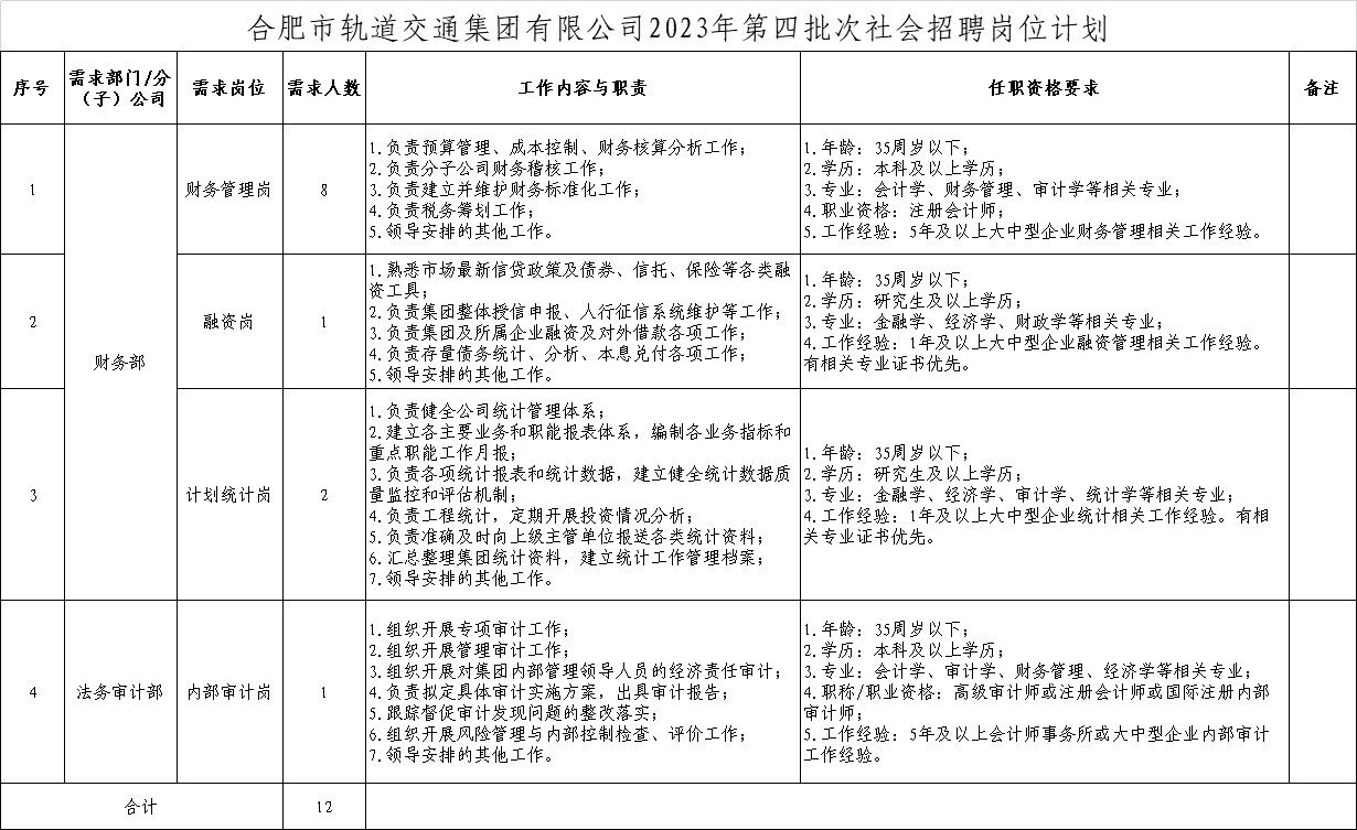 2023年合肥市軌道交通集團(tuán)有限公司第四批次社會(huì)招聘公告