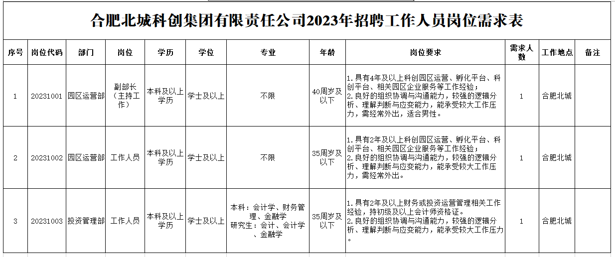 2023年合肥北城科創(chuàng)集團有限責(zé)任公司招聘工作人員公告